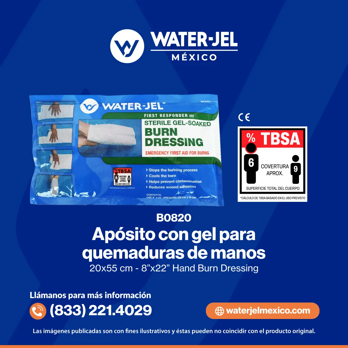 B0820 Apósito de mano con gel para quemaduras 20x55cm – Burn Dressing for Hand Burns │ Water-Jel
