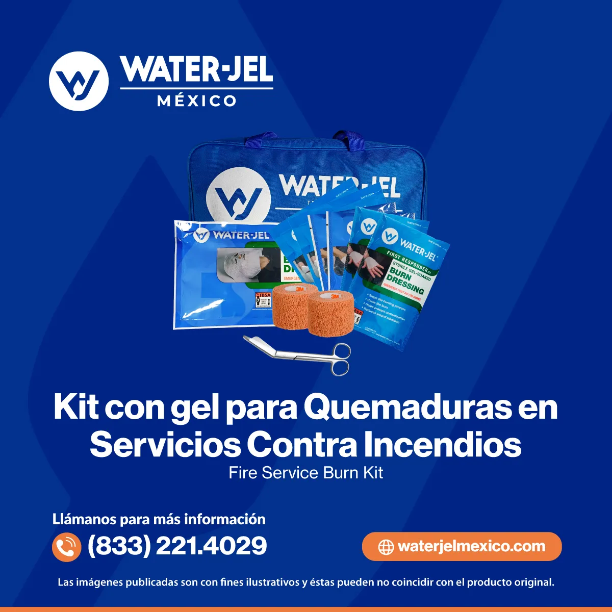 El Kit con gel para Quemaduras en Servicios Contra Incendios Water-Jel es un equipo esencial para bomberos y brigadas de rescate. Su gel de acción ultra-rápida trata quemaduras por llamas, vapor o superficies calientes, reduciendo el dolor y previniendo daños profundos, es un aliado crítico en intervenciones de alto riesgo.