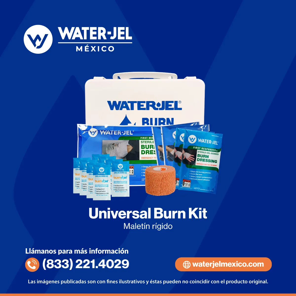El Universal Hard Case Burn Kit Water-Jel es la solución todo-en-uno para emergencias por quemaduras en entornos exigentes. Su estuche rígido y resistente protege los diferentes productos Water-Jel, diseñado para enfriar quemaduras graves (2° y 3° grado) y reducir el dolor en segundos. Ideal para equipos de rescate, fábricas y lugares con alto riesgo de quemaduras.
